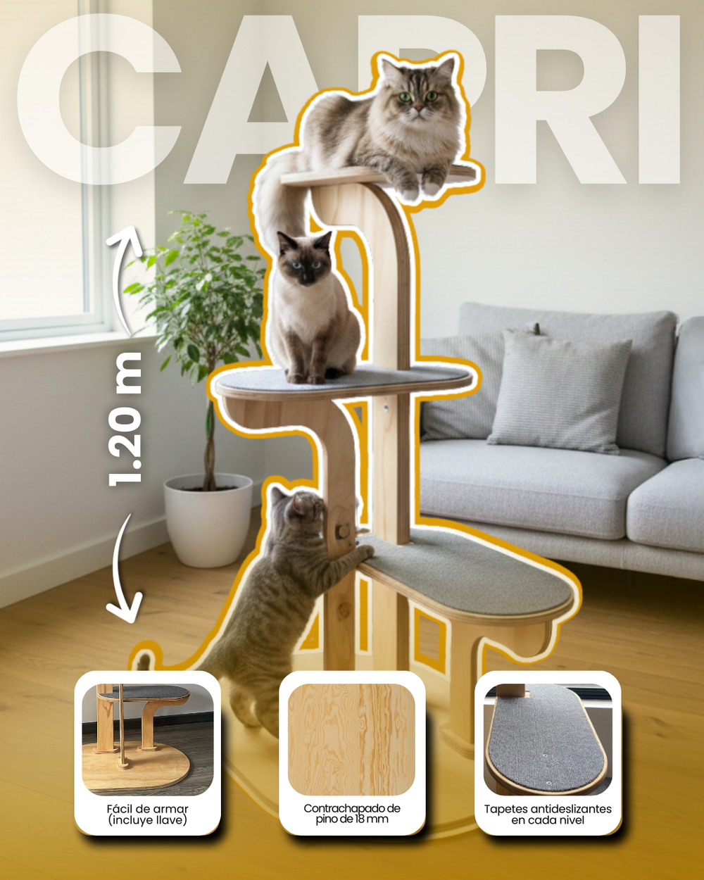 Olvídate de procesos complejos porque Capri llega listo para ensamblar de forma intuitiva y veloz. 🔧😻