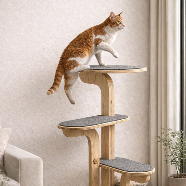 El Gimnasio Capri combina materiales sostenibles con un diseño pensado para la máxima estabilidad felina. 🪵🏔️