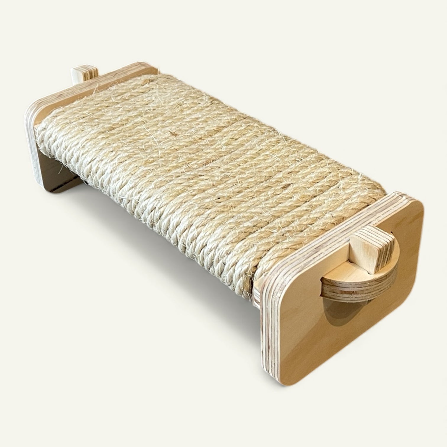 Este rascador llega desarmado para que vivas la experiencia de armarlo, pintarlo y personalizarlo como quieras. Está diseñado con piezas en madera natural tipo contrachapado y una cabulla gruesa 100 % de fique, perfecta para el instinto rascador de tu gato.